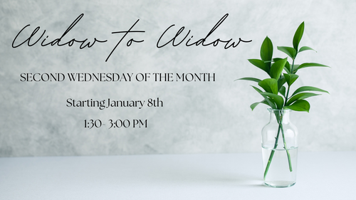 Widow to Widow (W2W) communities are compassionate, caring groups for widows of all ages, cultures, faiths, and backgrounds. W2W helps widows realize that they are not alone on this unwanted journey. Whether your loss was recent or a few years ago, there is a place for you at W2W. The group meets on the second Wednesday of every month.